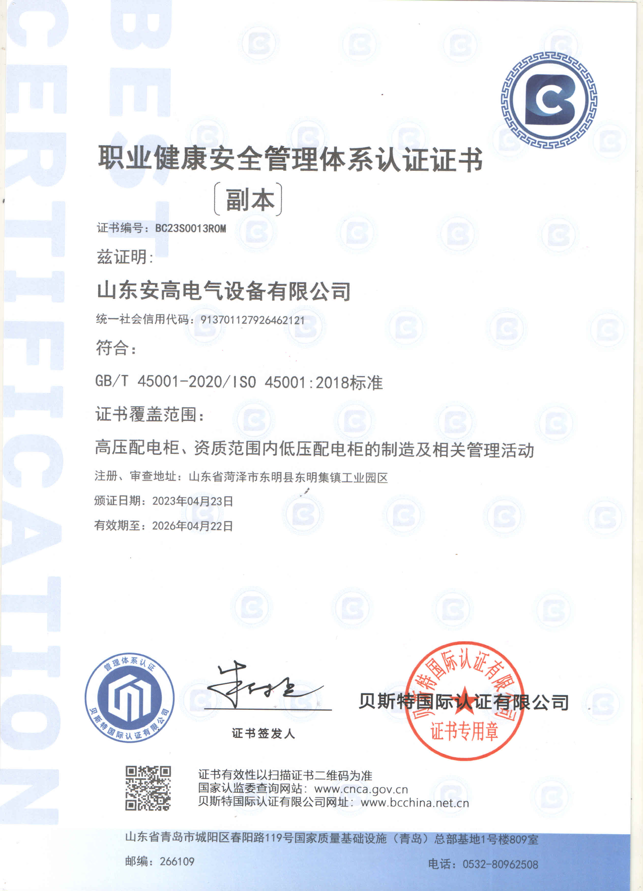 公司通過“IS09001質(zhì)量管理體系認(rèn)證”、“GB/T 14001環(huán)境管理體系認(rèn)證”、“GB/T 45001職業(yè)健康安全管理體系認(rèn)證”三大體系認(rèn)證,榮獲國家級“高新技術(shù)企業(yè)”、國家級“科技型中小企業(yè)”、“山東省專精特新中小企業(yè)”、“企業(yè)技術(shù)中心”、“山東知名品牌”等榮譽稱號;并與國內(nèi)外知名高校建立長期的戰(zhàn)略合作關(guān)系,加強技術(shù)研發(fā)與項目開發(fā)。